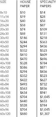 Archival, pigmented inks enhance the house recommended premium grade glossy, luster, semi-matte and matte papers. For the discerning artist, collector and curator we offer an extensive selection of fine art papers in cotton and alpha cellulose. Canvas, fabrics and films are also available. Inquire about the features and benefits of our color managed production environment.